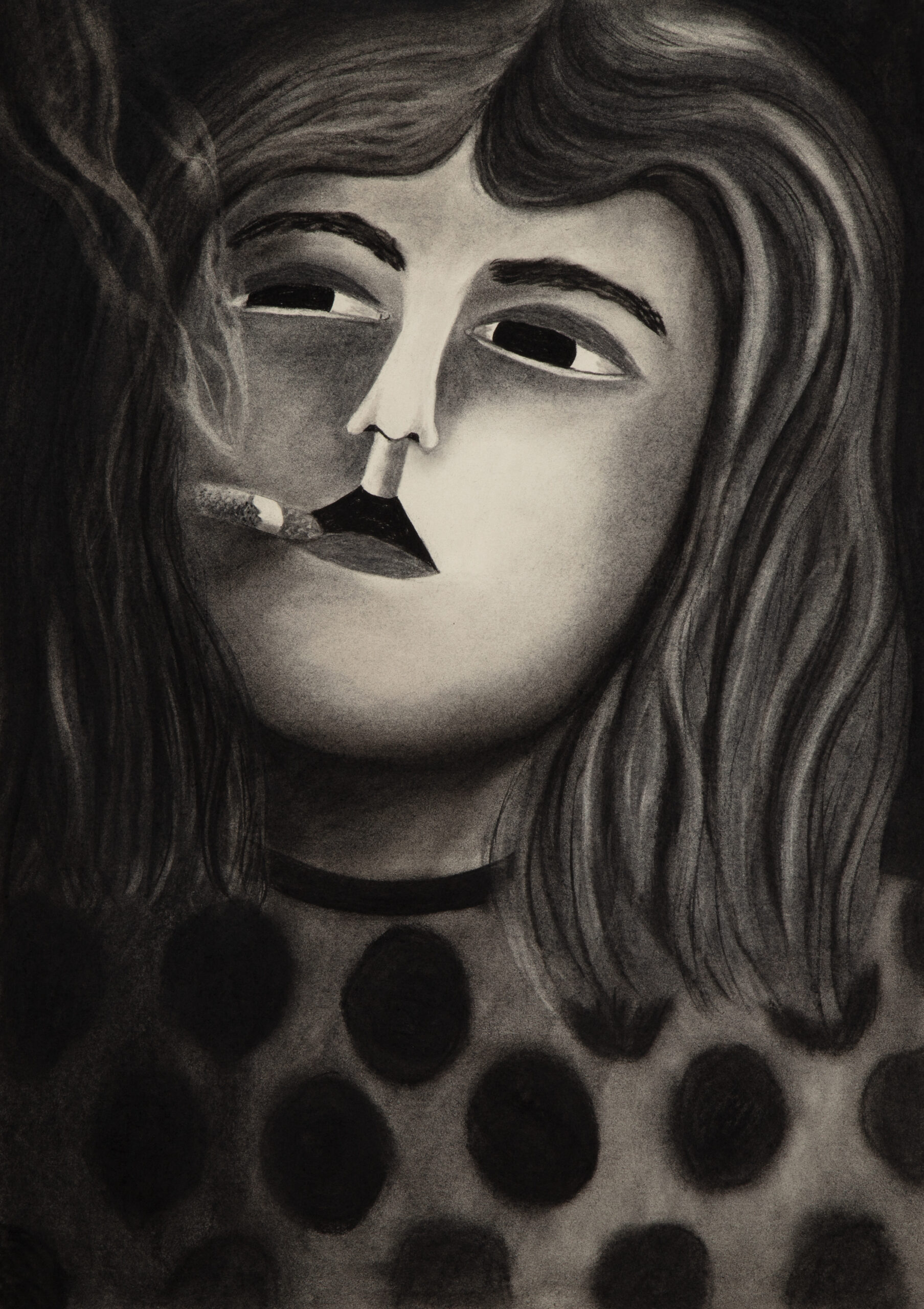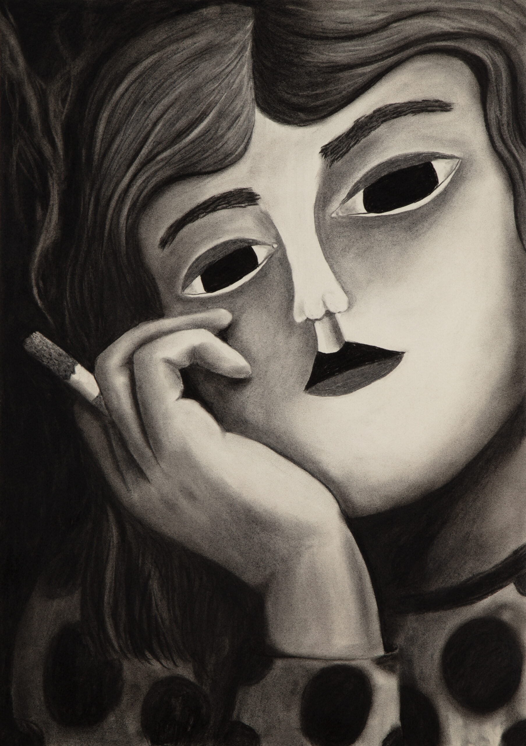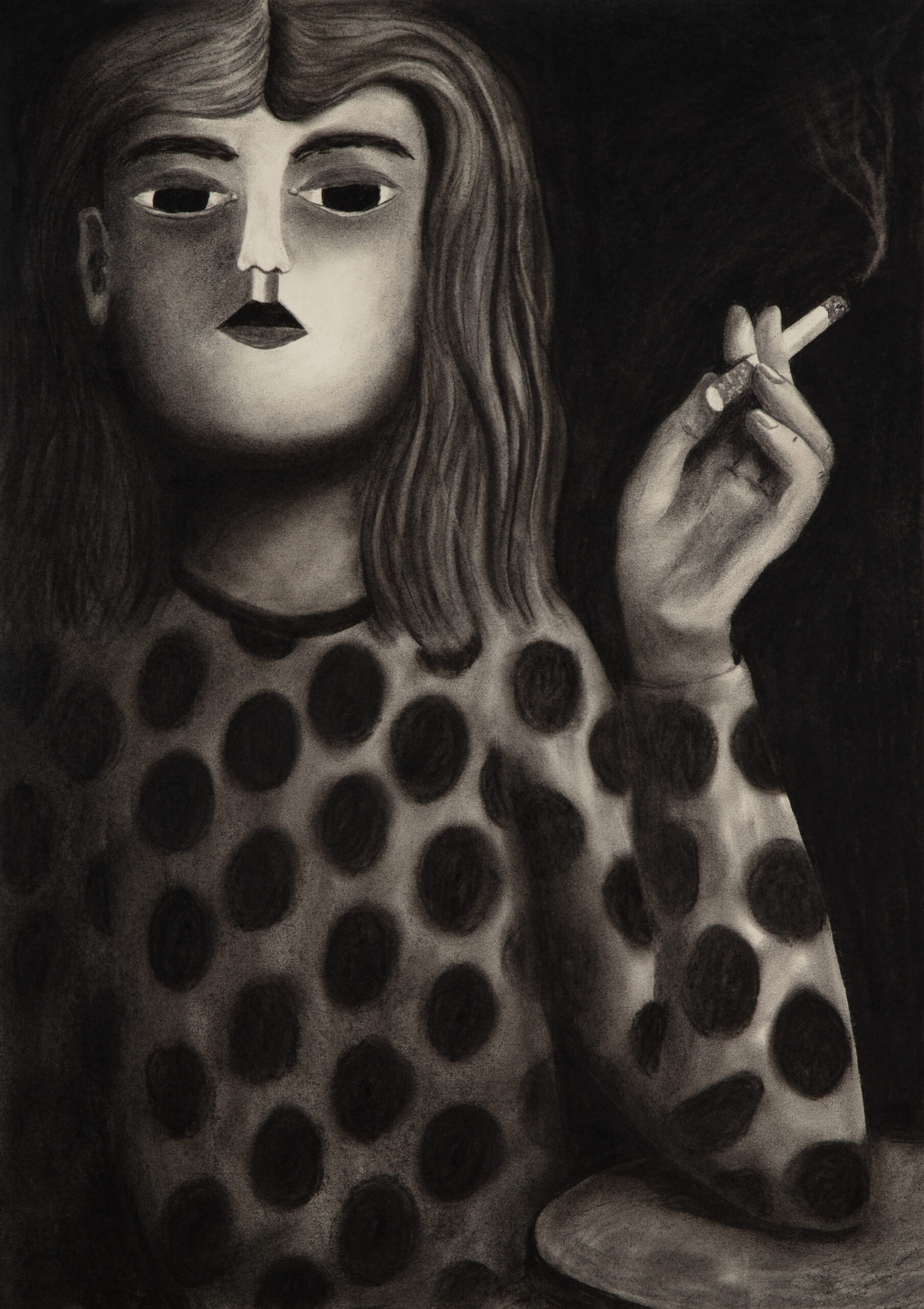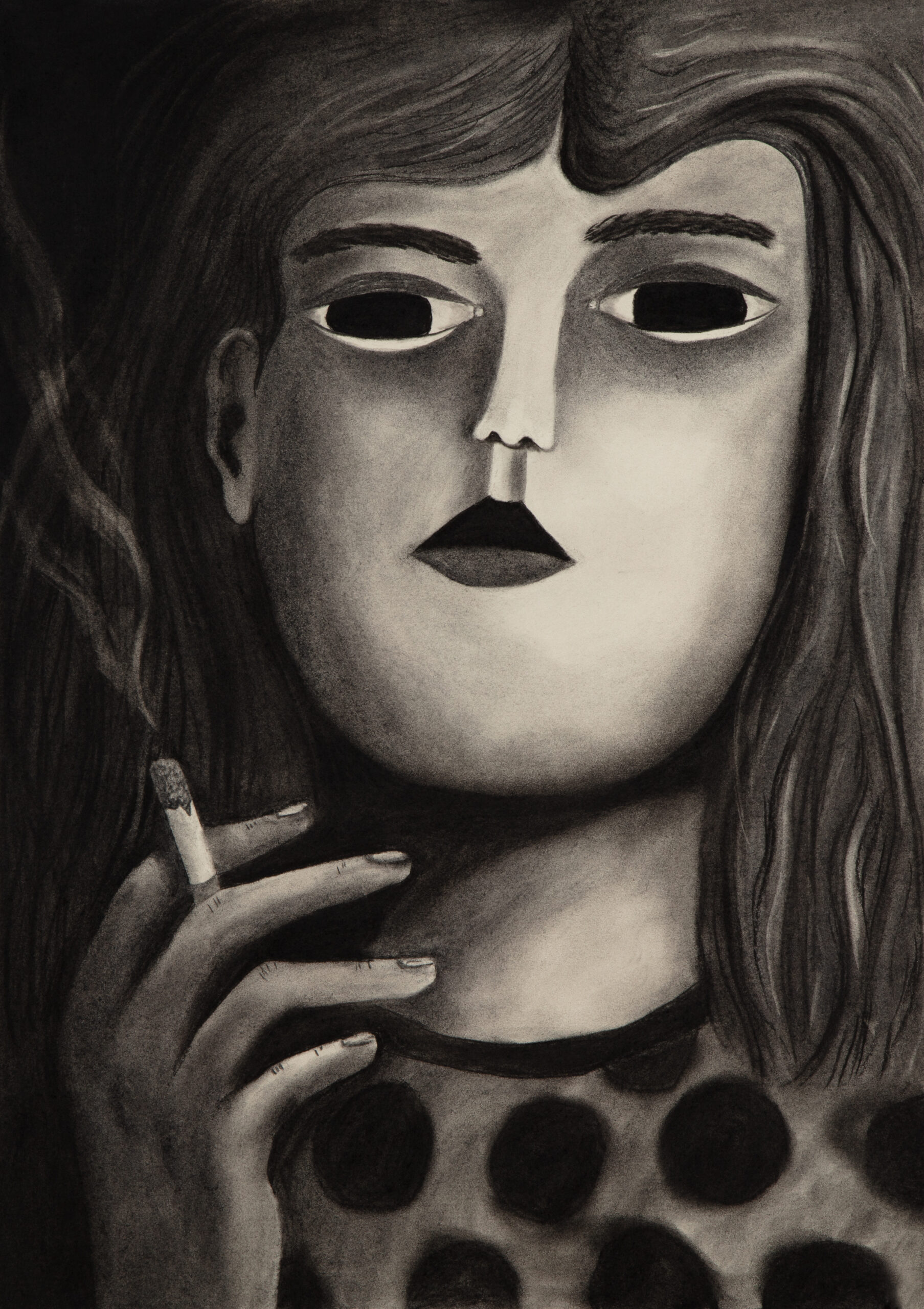 It is about a woman smoking a cigarette, but the story isn’t about smoking. Her pose is borrowed from art history, from the 19th century to today. Reference images, in order: Nan Goldin, Suzanne with Marlboro, 1980; Auguste Leveque, Portrait of Suzanne, 1866–1921; Édouard Manet, Plum Brandy, 1877; Alfred James Munnings, A Study of Miss Hancock, 1878–1959; Picasso, Young Woman Holding a Cigarette, 1901; Salvatore Fiume, A Susette, 1956; Fabio Hurtado, Travel Reading, 2010; Sarah Lucas, Fighting Fire with Fire, 1996.